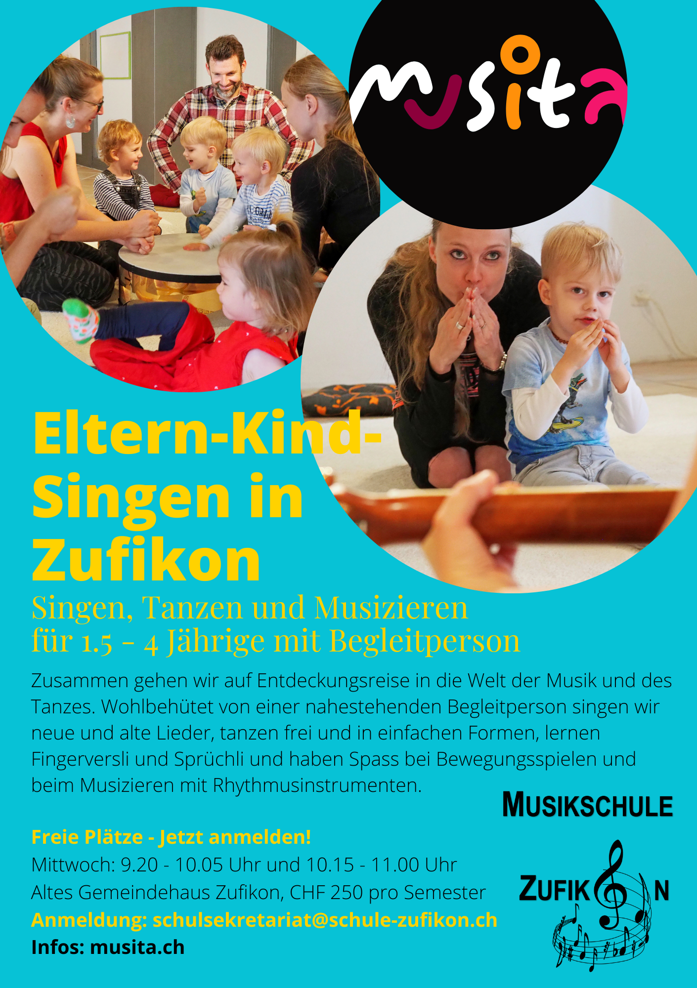 - Zufikon: Nicole Erni, Musikschule Zufikon, schulsekretariat@schule-zufikon.ch, https://zufikon.ch/musikschulinfos. > Flyer