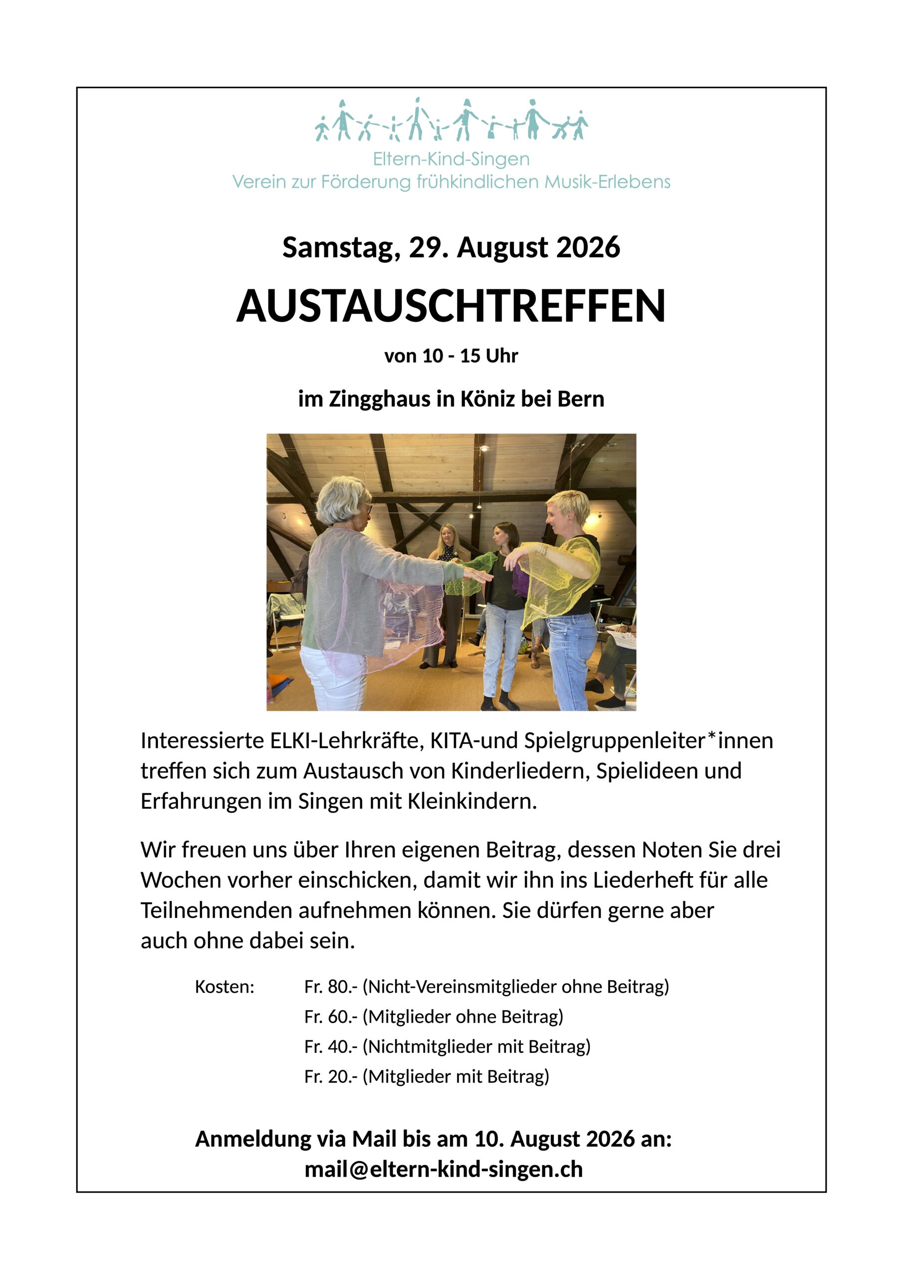 - Weiterbildungstag des Vereins Eltern-Kind-Singen im November